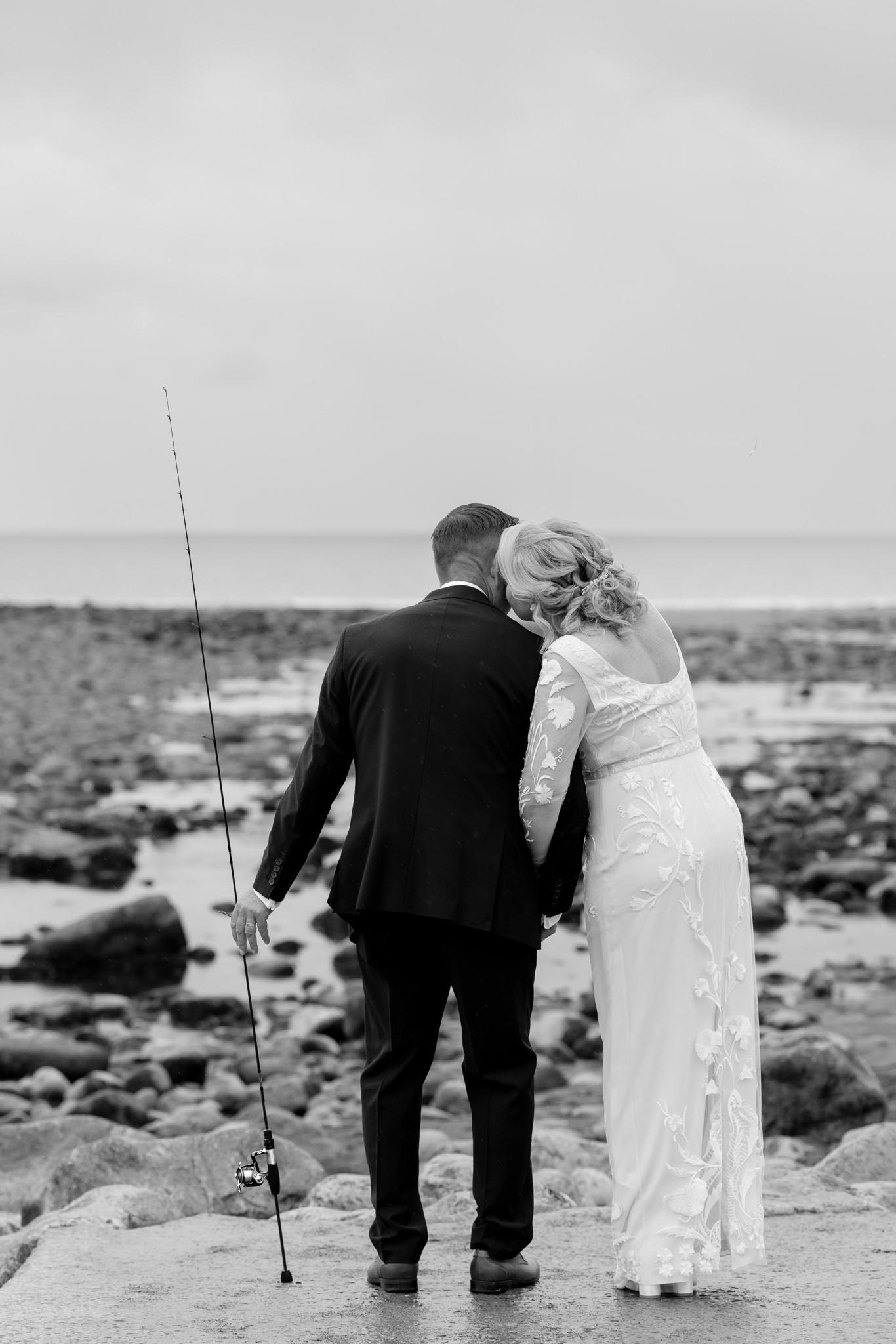The humour in the vows set the tone for Claire & Paul’s fabulous wedding at Rosedew Farm in Llantwit Major in South Wales. We dodged the rain for an epic confetti shot and even got to the beach for some cute photos. Paul (Wozy) is a massive fishing fan (@wozyrivergarden) so we had to include a sweet photo of the two of them with his rod.
